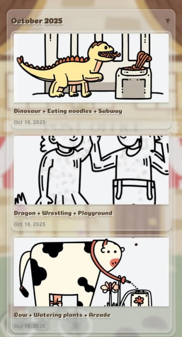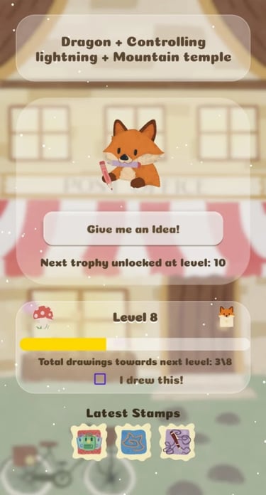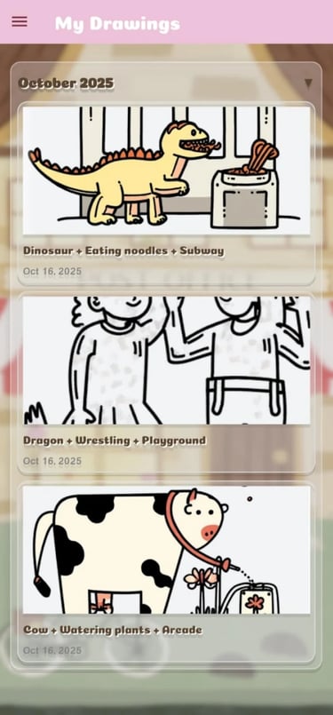 The app generates random drawing prompts to help users overcome creative blocks and build a regular drawing habit. Finished artworks can be saved to an in app diary, where users can track their progress, level up, and unlock collectible badges turning creativity into a gentle, rewarding experience.