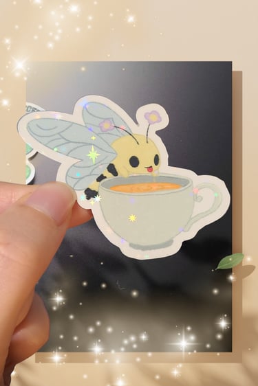 If you love calm mornings, try warm-toned stickers like a bee sipping tea, paired with plants or flowers for cozy energy.